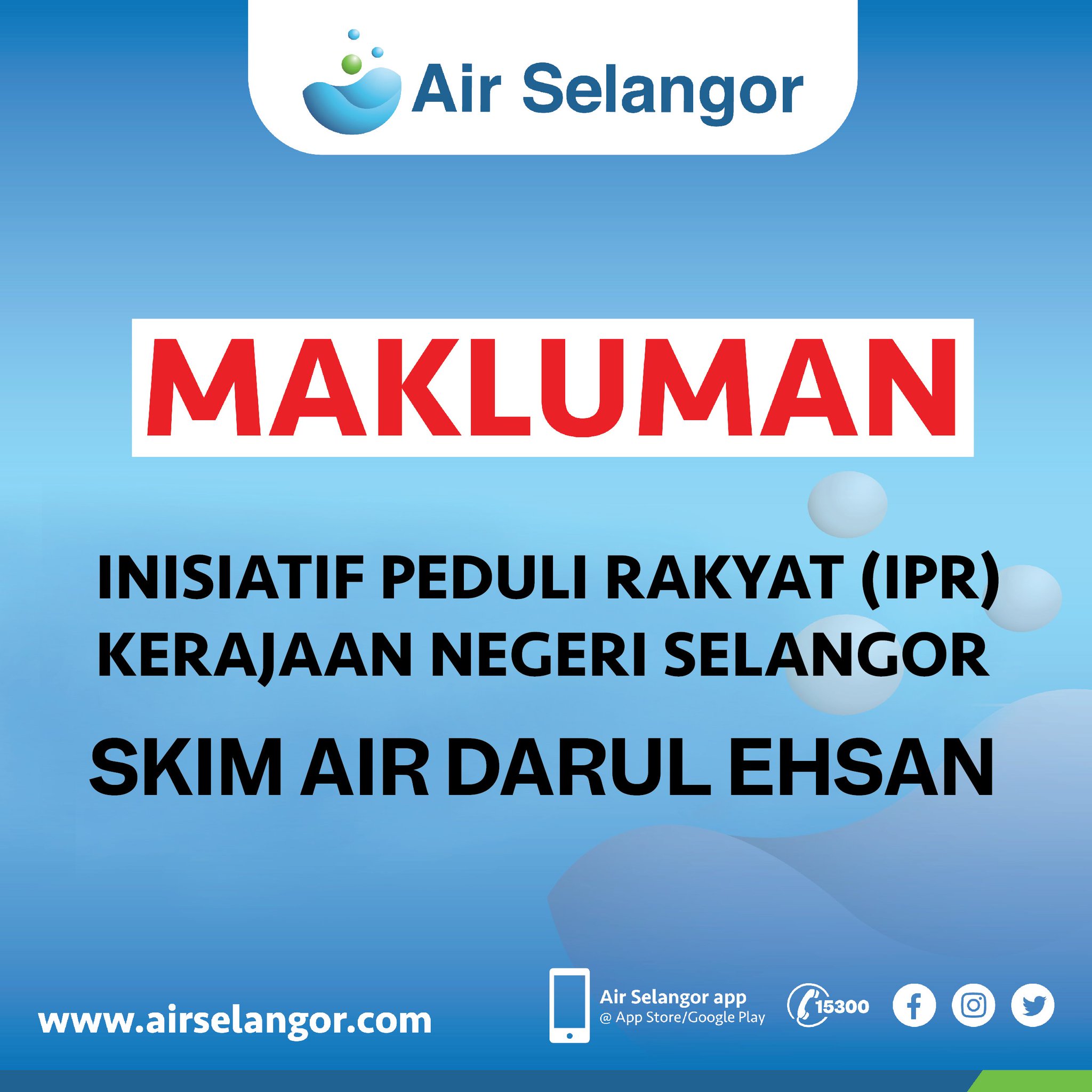 Pendaftaran Baharu Skim Air Darul Ehsan Kini Di Buka Pengurusan Air Selangor Sms Helpline 15300