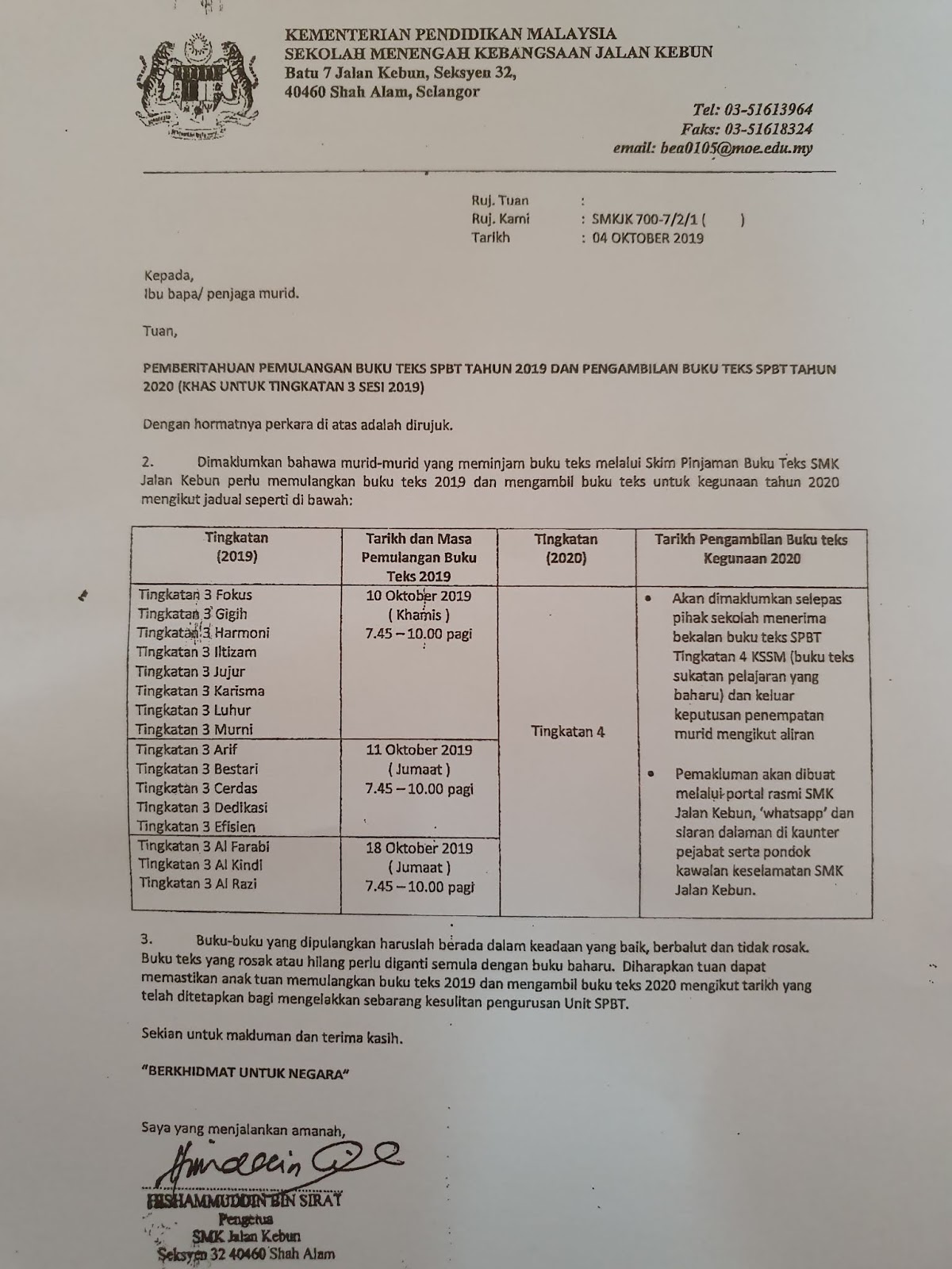 Portal Rasmi Smk Jalan Kebun Klang Pemulangan Buku Teks Spbt Tingkatan 3