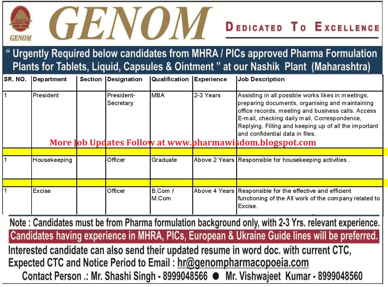 Urgent Multiple Openings In Analytical Method Development Amd F D Purchase Engineering Hr Admin Departments Genom Biotech Pvt Ltd Nashik Pharma Wisdom