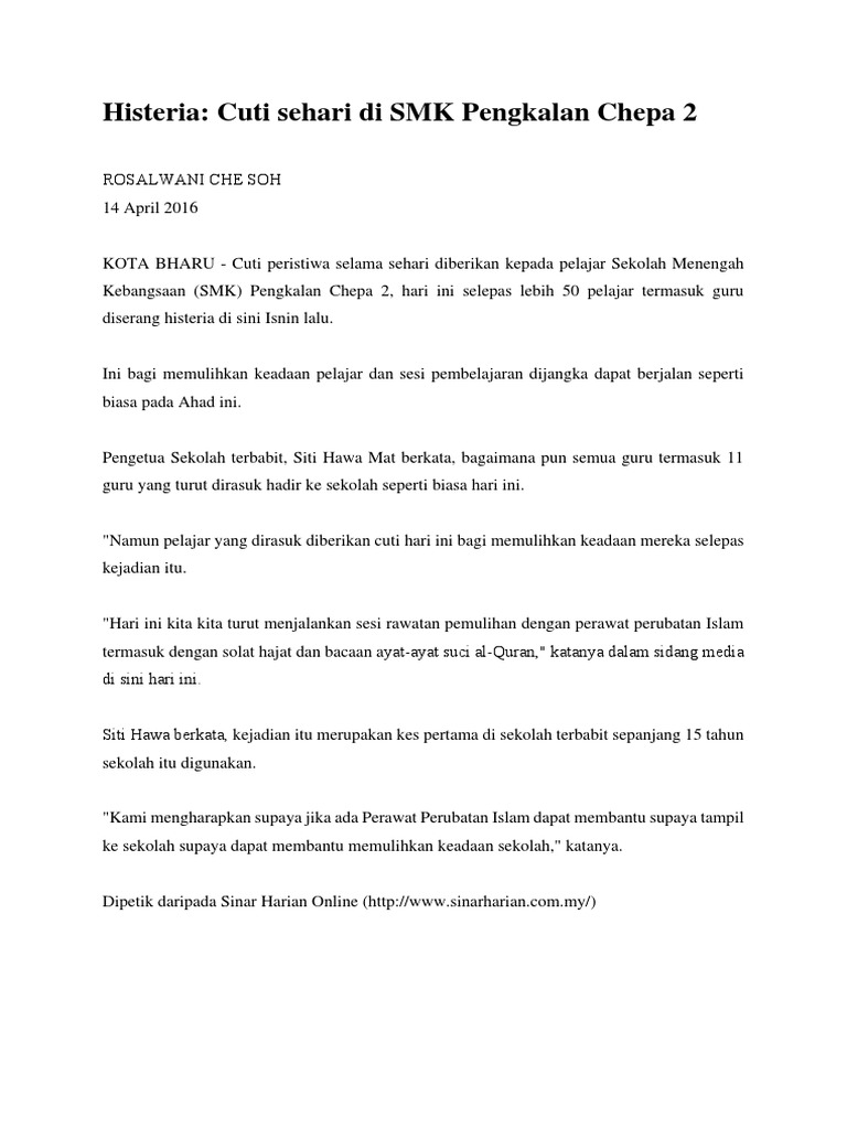 Histeria Cuti Sehari Di Smk Pengkalan Chepa 2