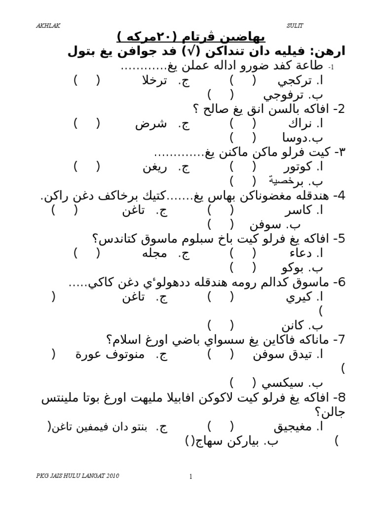 Contoh Soalan Akhlak Tahun 1 Sekolah Agama Soalan V