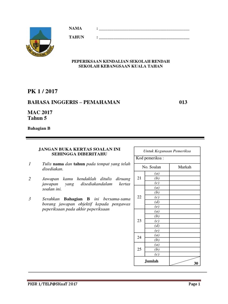 Kumpulan Peperiksaan Awal Tahun Bahasa Inggeris Tahun 5 Yang Terbaik Khas Untuk Para Ibubapa Muat Turun Pekeliling Terbaru Kerajaan