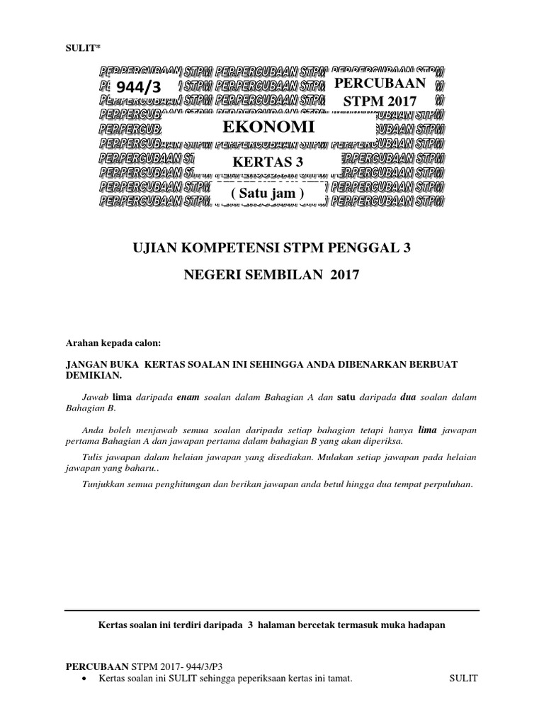 Praktis Topik Kertas Soalan Peperiksaan Tahun Tahun Lepas 2013 2017 Stpm Ekonomi Penggal 3