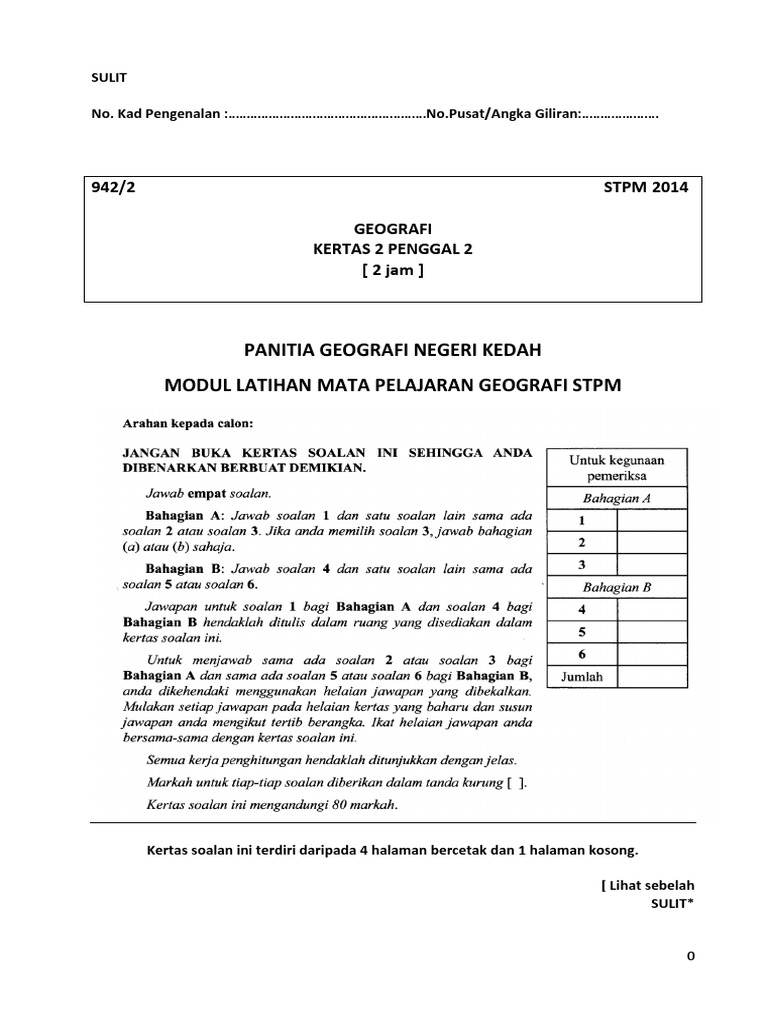 Soalan Pra Stpm Geografi 942 2 2014 Kedah