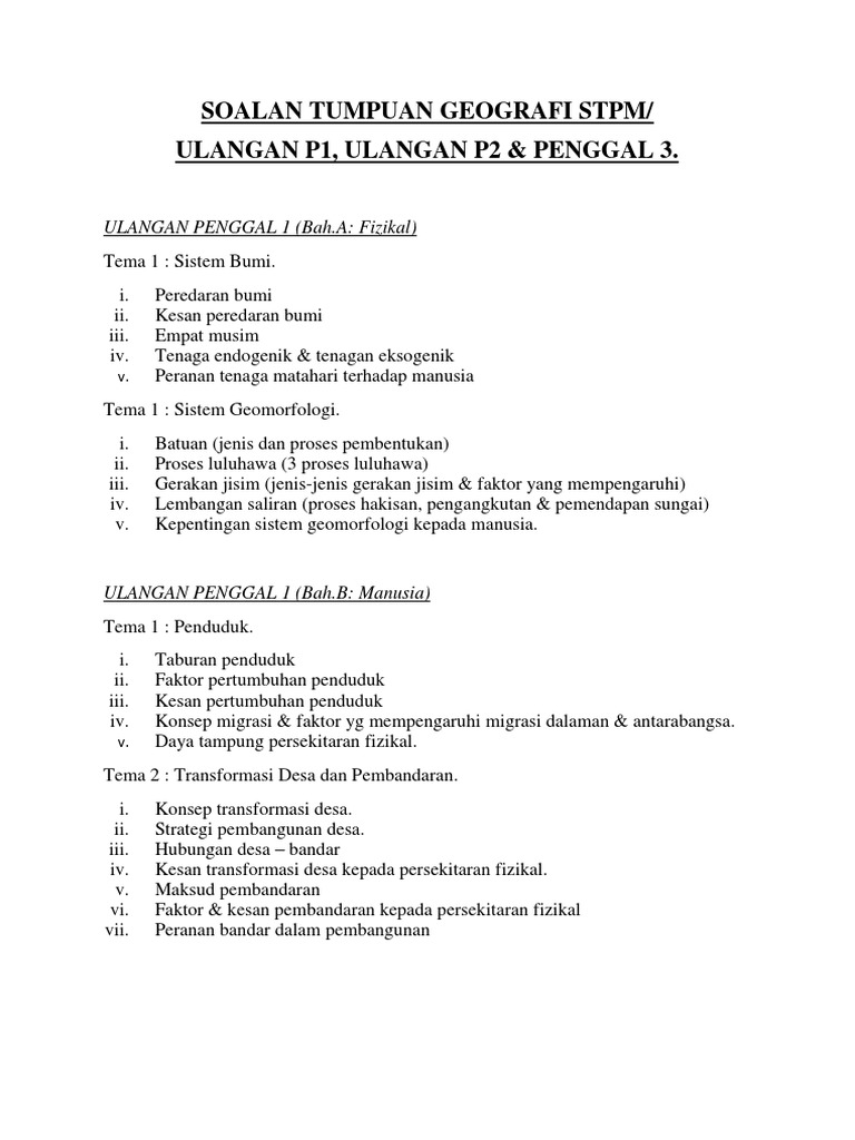 Soalan Geografi Stpm Penggal 2 Kecemasan P