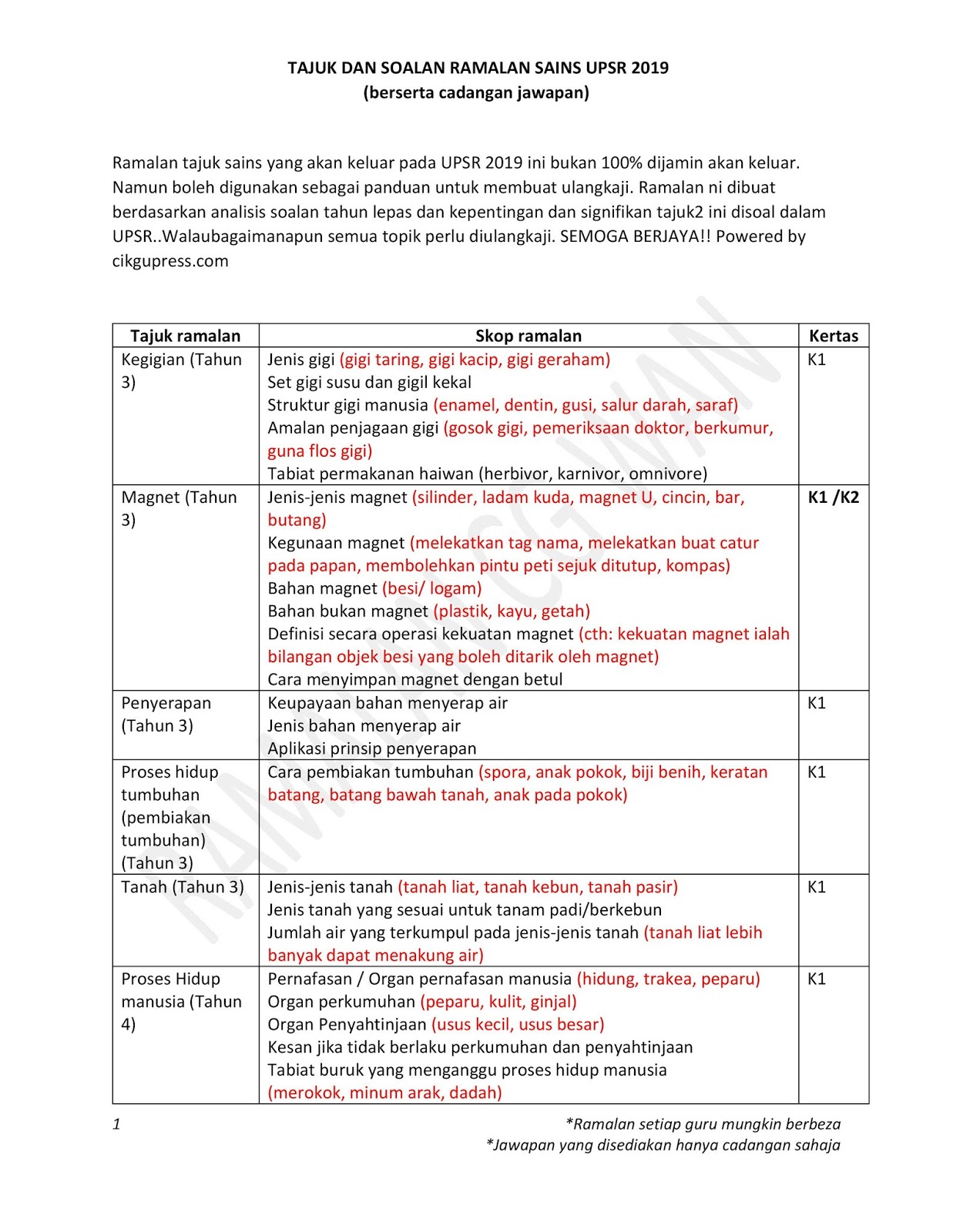 Jawapan Soalan Sains Upsr 2019 Kecemasan K
