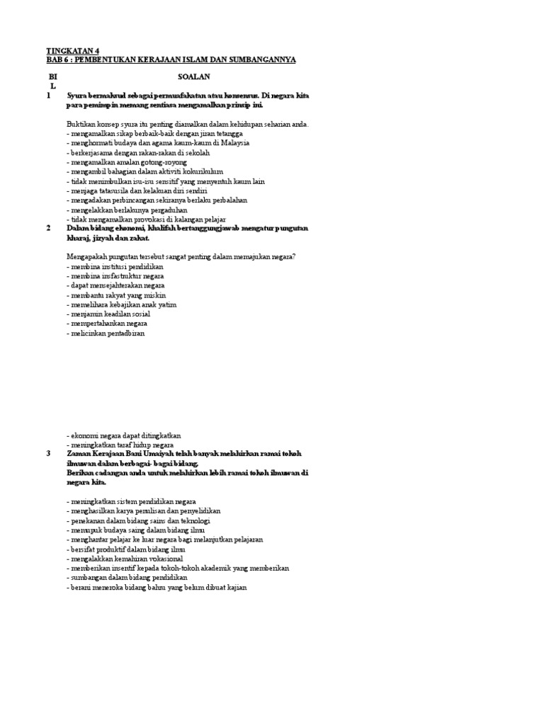 Kertas 3 Sejarah Tingkatn 4 Bab 6 Pembentukan Kerajaan Islam Dan Sumbangannya