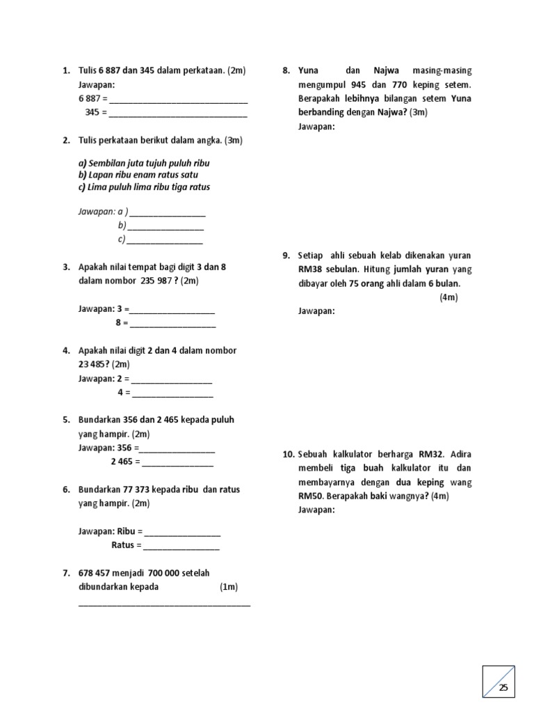 Soalan Latihan Matematik Tingkatan 1 Menarik 100 Soalan Matematik Ting1 Gambarsurat Com Skoloh