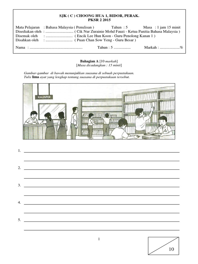 Ujian Penulisan Bahasa Malaysia Tahun 5 Sjk