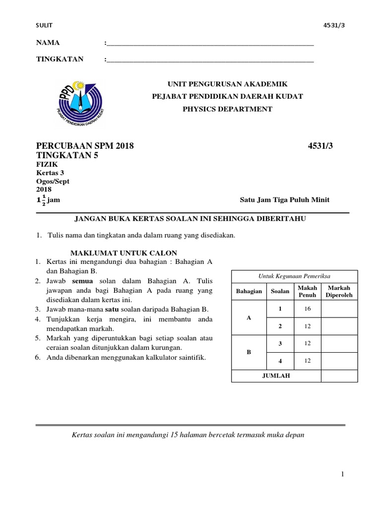 Percubaan Spm Fizik Kelantan 2018 Sumber Pendidikan