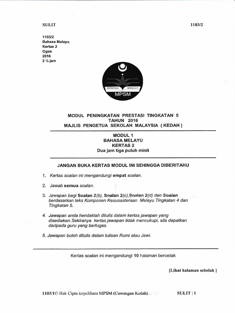 Soalan Percubaan Spm 2016 Bahasa Melayu Kedah