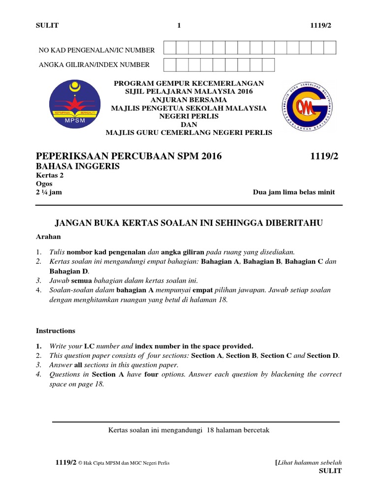 2016 Perlis Spm Trial English Paper 2