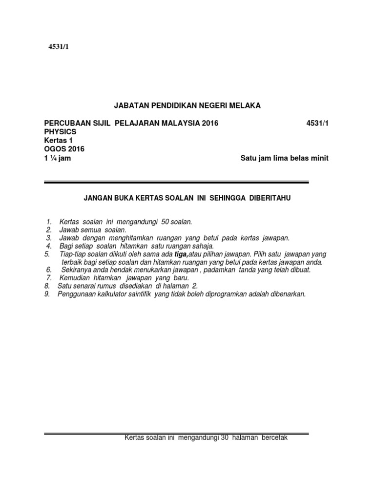 Soalan Percubaan 2016 Spm Bahasa Melayu Kertas 1 Pdf Document