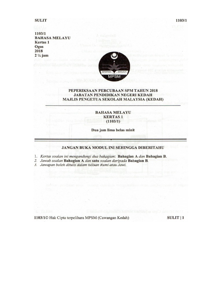 Download Soalan Peperiksaan Bahasa Melayu Percubaan Spm 2018 Kedah Pendidikanmalaysia Com