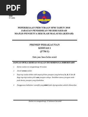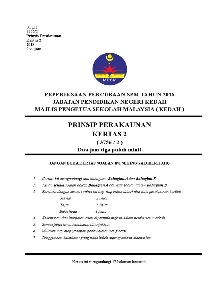 Soalan Percubaan Spm 2018 Prinsip Perakaunan Kedah