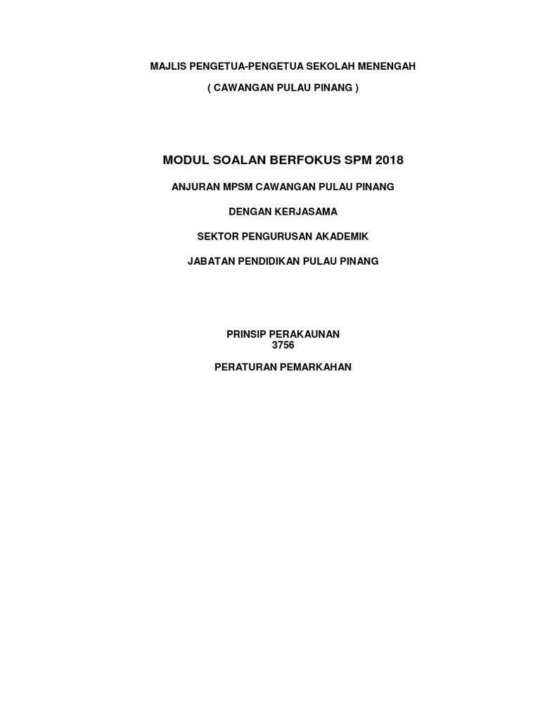Modul Soalan Berfokus Spm 2018 Majlis Pengetua Pengetua Sekolah Menengah Cawangan Pulau Pinang
