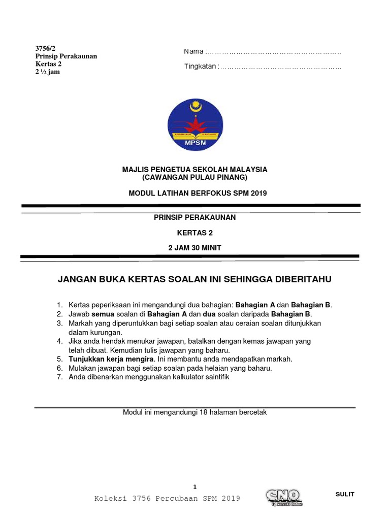 Soalan Percubaan Spm 2018 Prinsip Perakaunan Pulau Pinang