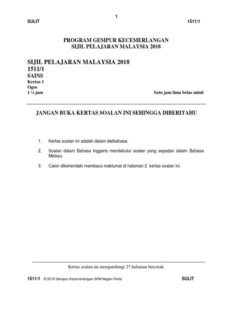 Percubaan Spm Sains Perlis K1 2018