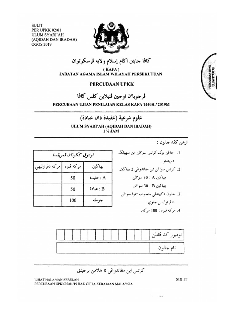 Soalan Percubaan Aqidah Dan Ibadah Upkk Pusat Tuisyen An Najah Facebook