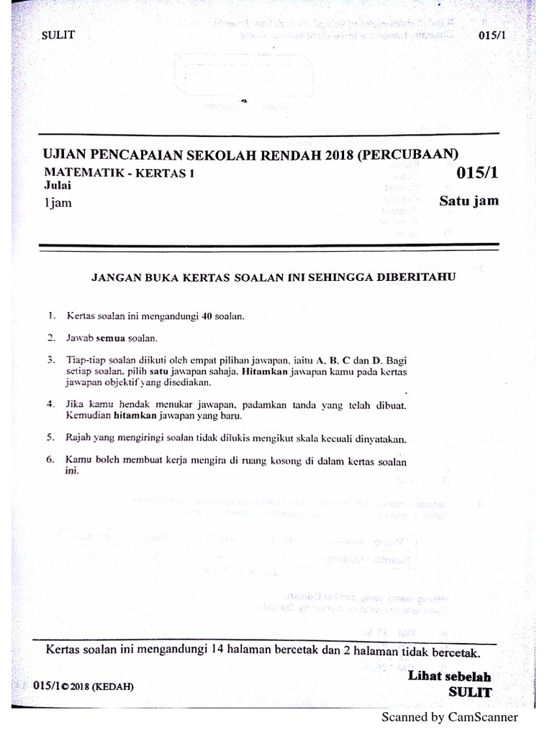 Upsr ujian pencapaian sekolah rendah. Soalan soalan percubaan upsr 2019 bagi semua subjek dari setiap negeri disenaraikan di bawah. Ia adalah satu proses untuk memperolehi maklumat kuantitatif. Kertas soalan peperiksaan percubaan matematik mathematics upsr 2019 skema jawapan.
