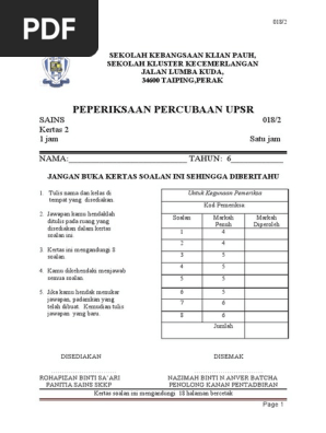 Soalan Percubaan Upsr 2019 Perak