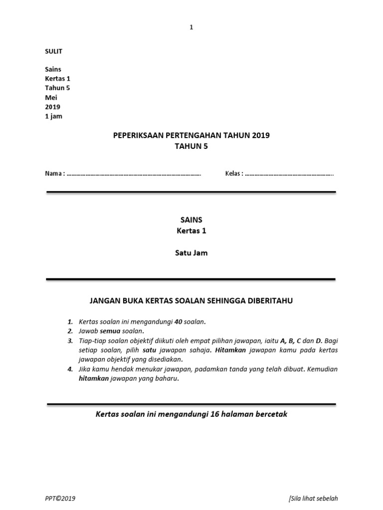 Soalan peperiksaan pertengahan tahun tahun 5 2 jawapan sila share kepada kawan kawan dengan menekan butang di bawah bahasa inggeris bahasa melayu sains matematik. Para pelajar perlu diuji melalui pelbagai kaedah penilaian bagi mengetahui sejauh mana pemahaman mereka dengan kemahiran yang telah diajar oleh guru. Sains tahun 5 kertas 1 berdasarkan upsr sebenar 2. May 12 2016 at 8 20 pm belajar rajin rajin nanti dapat no 1.
