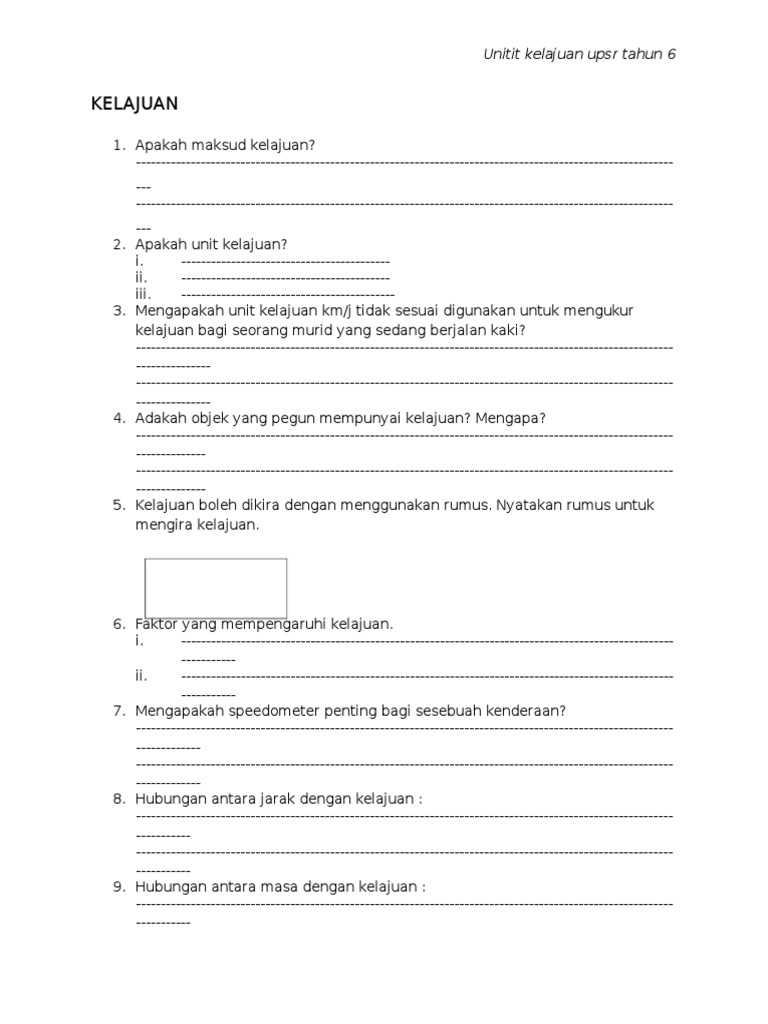 Latihan Kelajuan Tahun 6 Sains