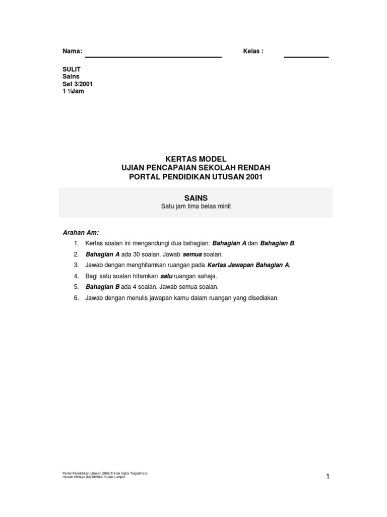Kertas Peperiksaan Sains Kertas 2 Upsr 2017 Sumber Pendidikan