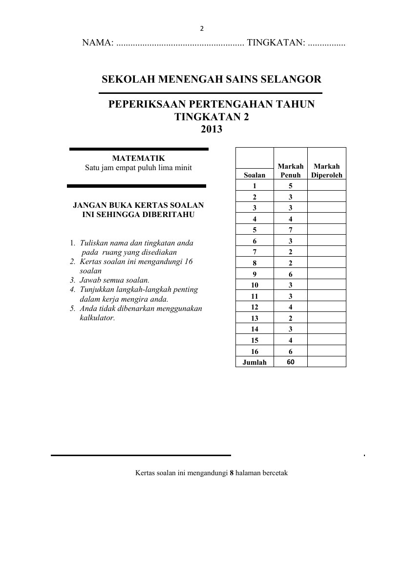 Bank Soalan Pertengahan Tahun Tingkatan 3 Gurubesar My