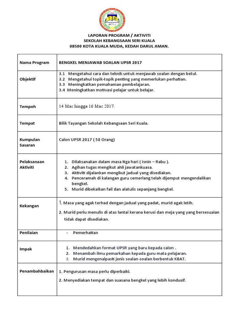 Laporan Bengkel Menjawab Soalan Upsr 2017
