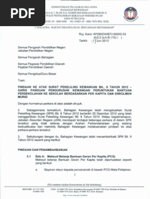 Spk Bil 8 2012 Garis Panduan Pengurusan Kewangan Peruntukan Bantuan Persekolahan Ke Sekolah Berdasarkan Pcg Dan Enrolmen Murid Pdf Document