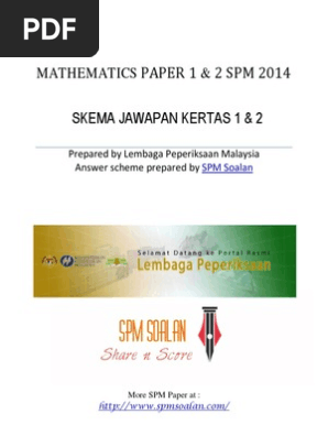 We provide spm trial paper questions with answers and soalan percubaan spm from 2011 2018. Perdagangan paper 1 2 prinsip perakaunan paper 1 2 ekonomi asas paper 1 2. We have gotten the spm past year question 2014 for mathematics from the lembaga peperiksaan. The paper provided is originally the real spm question of 2014.
