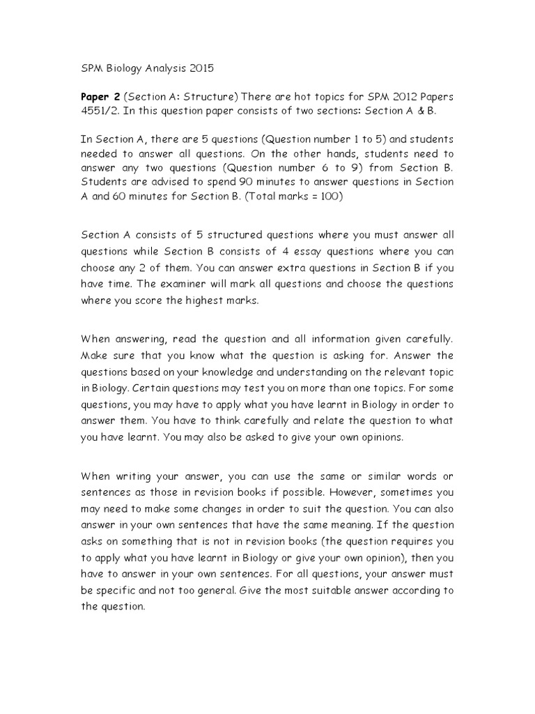 Spm Biology Analysis 2015p2 Question Cell Biology