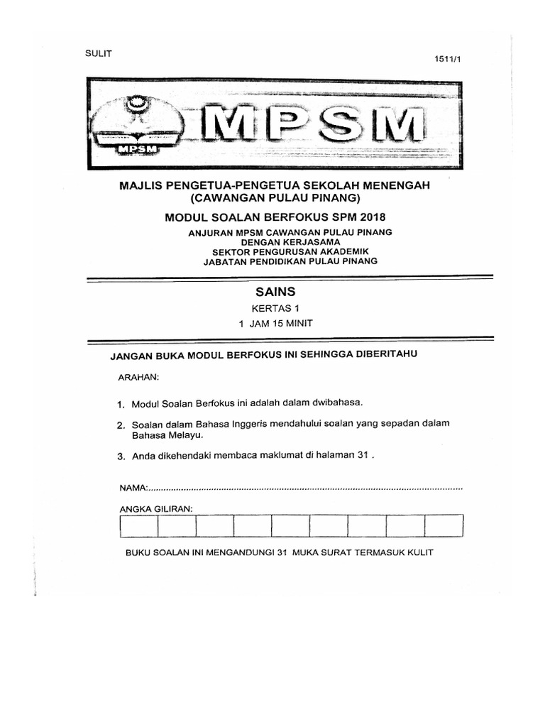 Trial Sc Spm Penang K1 2018 Pdf