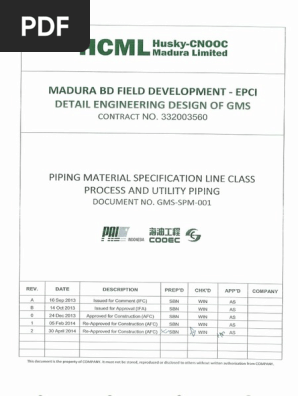 Gms Spm 001 Piping Material Specification Line Class Process And Utility Piping Rev 2 Pipe Fluid Conveyance Steel
