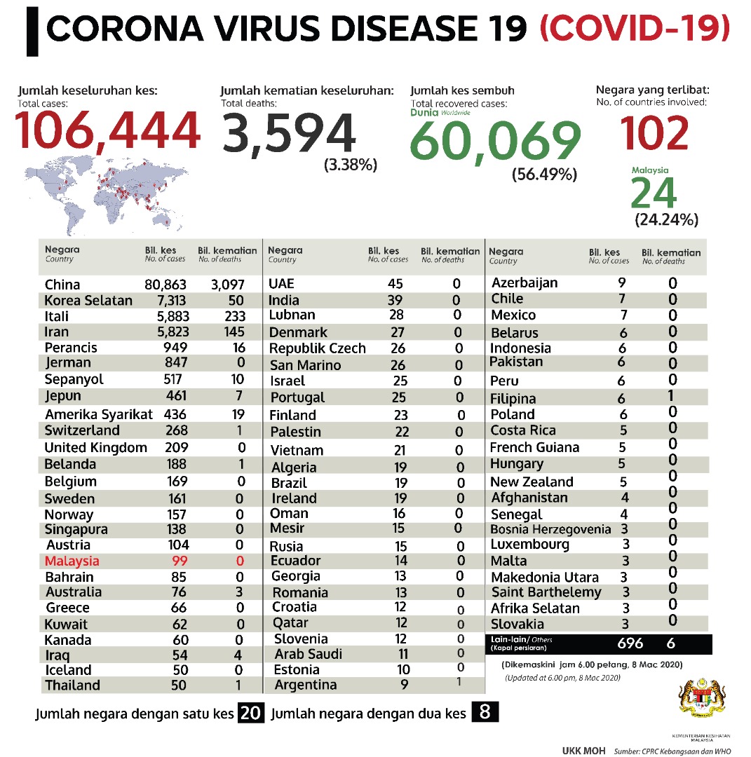 Covid19 Dunia Inforgrafik Statistik Terkini Who 8 Mac 2020 Kematian Di Itali Meningkat Ke 233 Best Fbkl