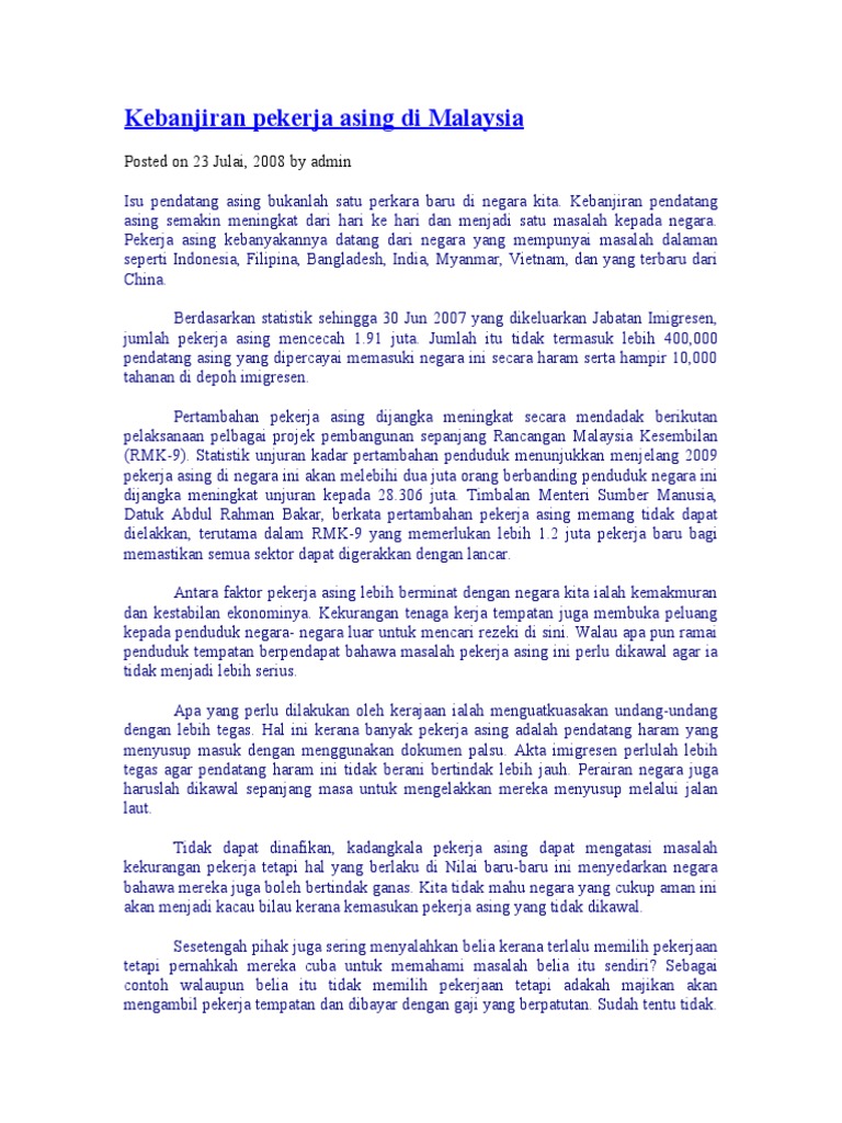 Doc Kesan Negatif Kebanjiran Warga Asing Di Malaysia Mohd Firdaus Academia Edu