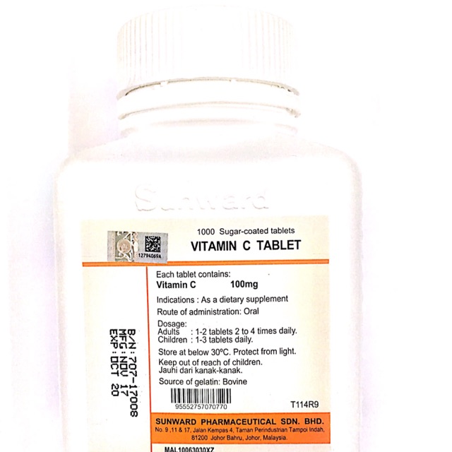Sunward Vitamin C 100mg X 1000s Exp 08 2022 Shopee Malaysia