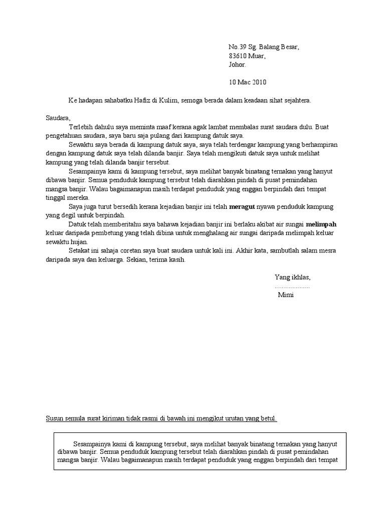 Karangan Surat Tidak Rasmi Dalam Bahasa Inggeris Surat Rasmi Q
