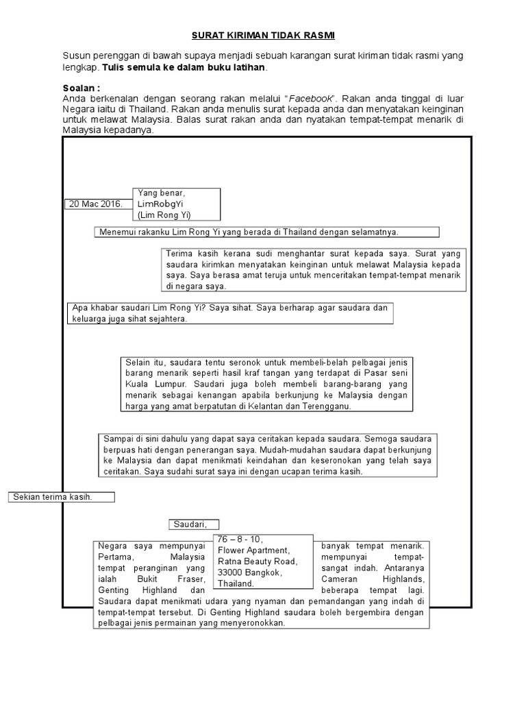 Latihan Karangan Surat Kiriman Tidak Rasmi Docx Document