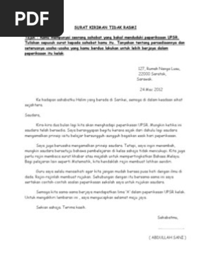 Format Dan Contoh Surat Tidak Rasmi Upsr Online