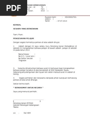 Student Affairs Contoh Surat Akuan Sijil Berhenti Sekolah