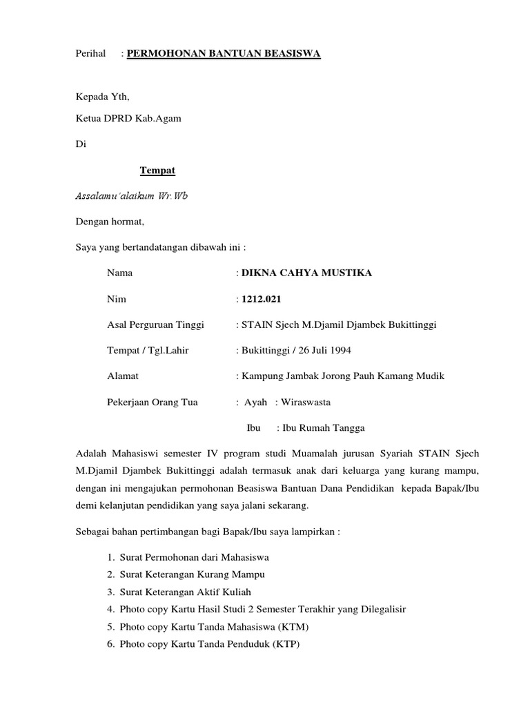 Permohonan Beasiswa Contoh Surat Permohonan Bantuan Dana Pendidikan Doc