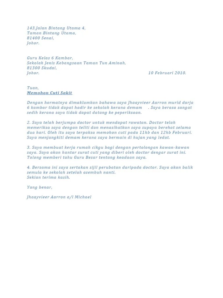 Contoh Surat Tidak Hadir Sekolah Brunei Backup Gambar