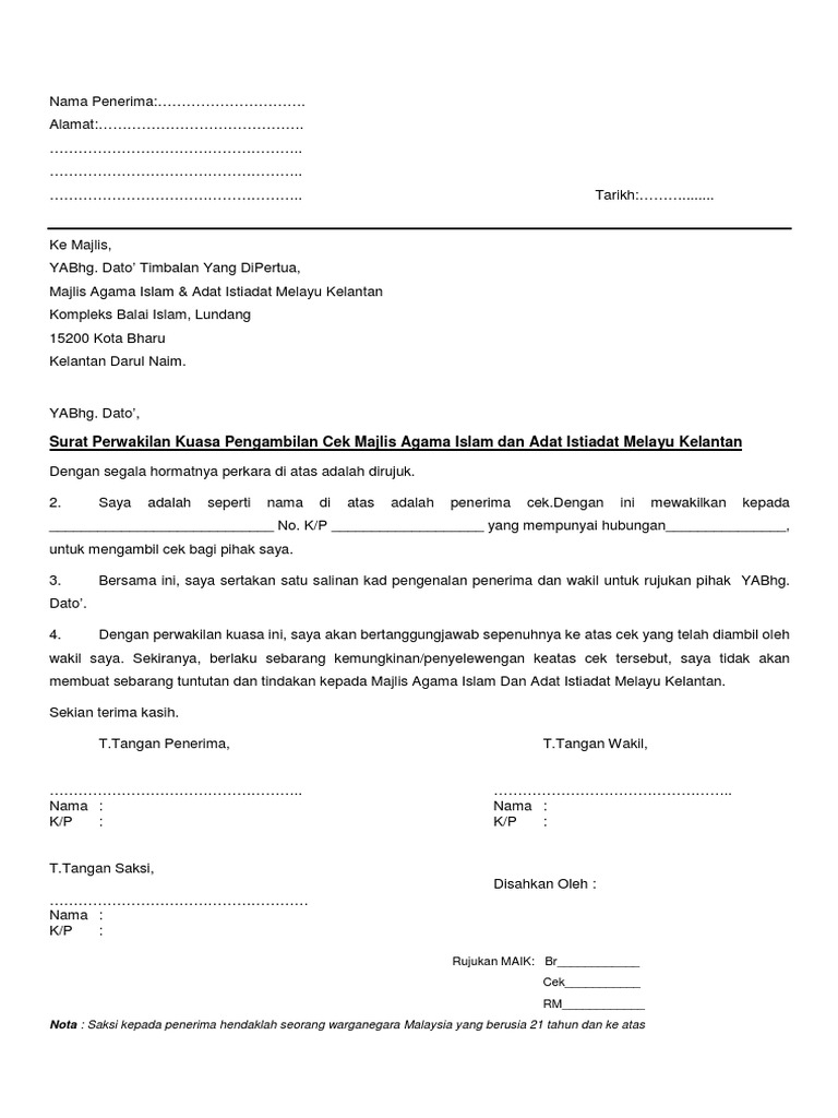Contoh Surat Wakil Ambil Gaji Backup Gambar