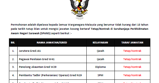 Jawatan Kosong Kerajaan Di Suruhanjaya Perkhidmatan Awam Negeri Sarawak Spans Tarikh Tutup 25 November 2019 Jawatan Kosong Kerajaan 2020 Terkini