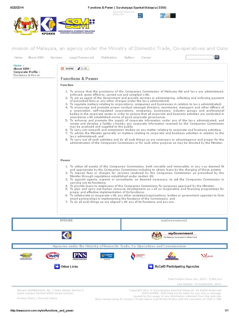 Functions Power Suruhanjaya Syarikat Malaysia Ssm Companies Cooperative