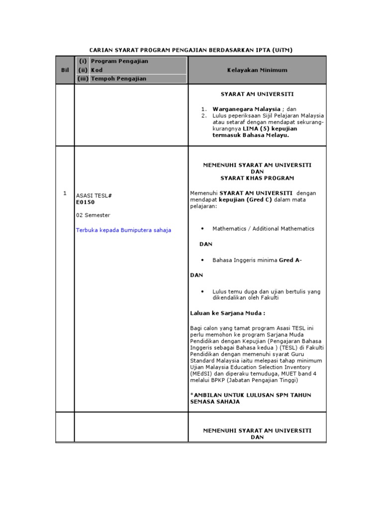 Program luar kampus plk setara sepenuh masa ss semakan syarat kelayakan. Program luar kampus plk setara sepenuh masa ss keputusan. Uitm cawangan melaka sarawak dan shah alam. Lulus spm atau yang diiktiraf dengannya oleh kerajaan malaysia dengan mendapat minima tiga 3 kredit kepujian termasuk bahasa melayu.