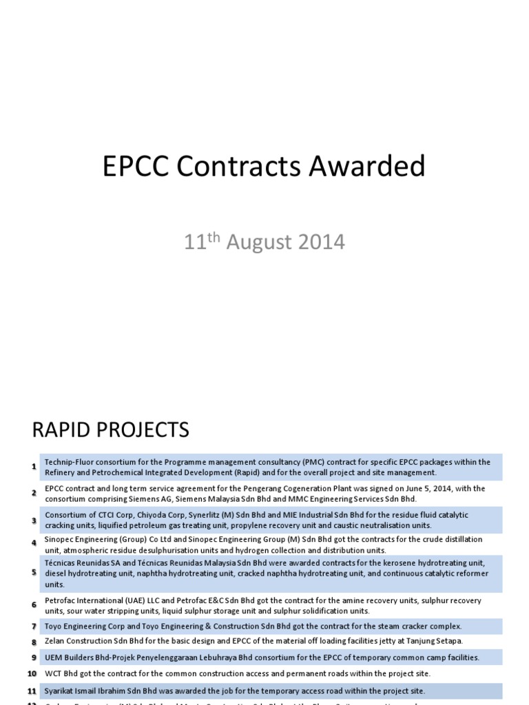 Petronas Details Rapid Project Contract Awards Chemical Process Engineering Pipe Fluid Conveyance