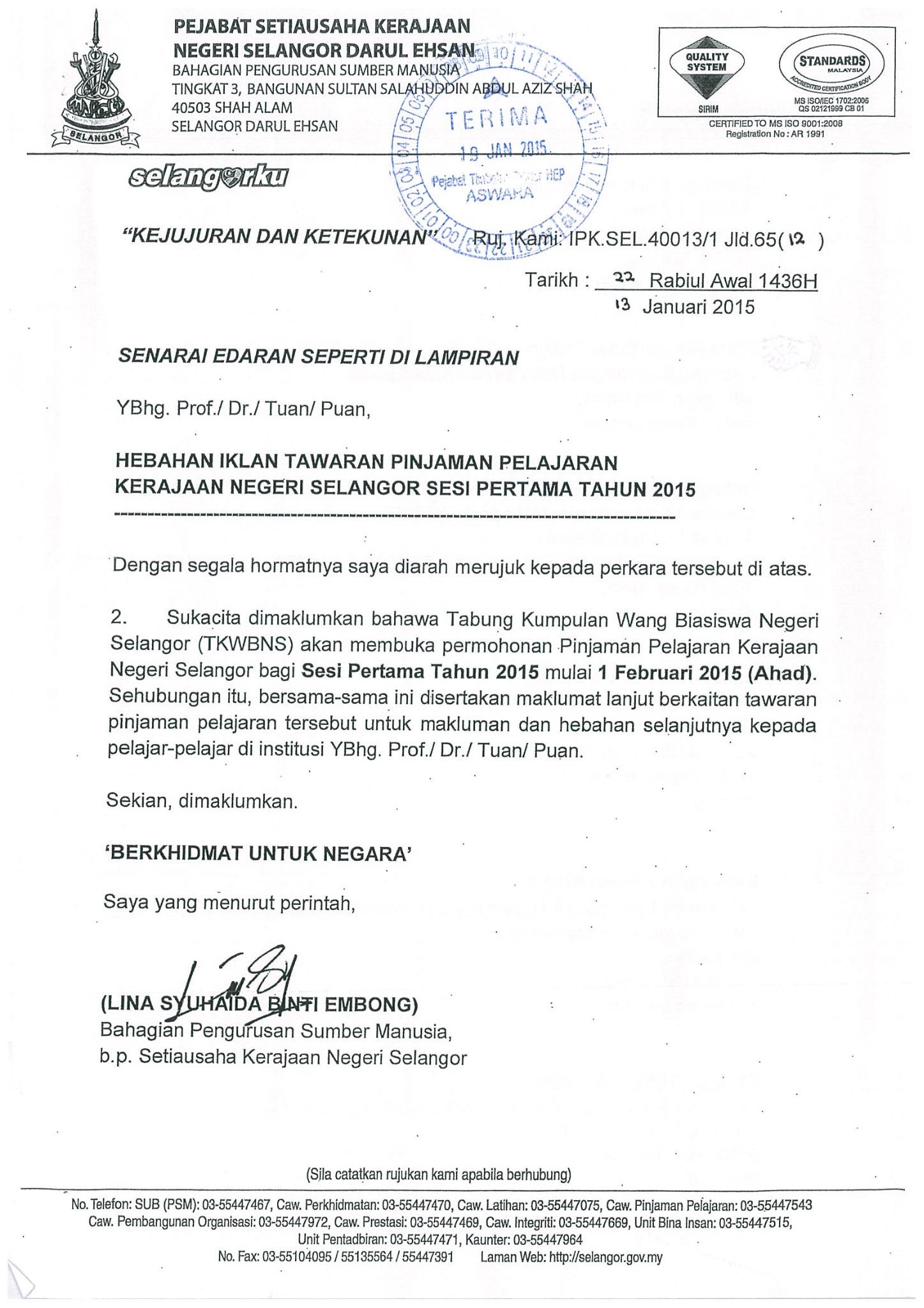 Pelajar yang telah tamat pengajian anda dikehendaki memaklumkan status tamat pengajian kepada pejabat atase pendidikan selangor mesir dan lembaga tabung kumpulan wang biasiswa negeri selangor dengan mengisi borang tamat pengajian yang disediakan. Tabung kumpulan wang biasiswa negeri selangor tkwbns august 18 2017 by uitm di ku happy new year promotion. Limited for 30 pcs only. Klik disini untuk borang.